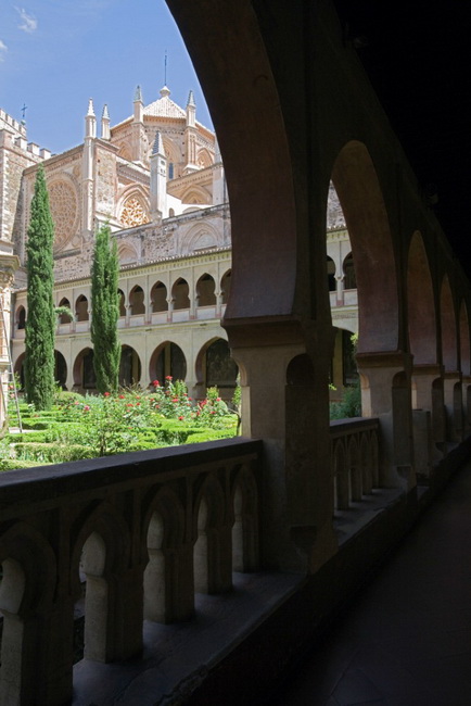 Even if you have already read in guide books about the size of the Monastery of Guadalupe, you will still be impressed by its actual appearance. To reach the monastery, you drive from Trujillo a long while through less frequented A-roads and via small villages like Logrosan and Cañamero. Before reaching the destination, you have to drive over several kilometres on winding and narrow roads which lead through the dense forest of the Sierra de Guadalupe. You finally reach the small town Guadalupe that is clung to an abrupt hill. As the road progresses uphill, you will see at first only the top of the tower and the roof of the monastery. Just before the majestic building you will see the church and the whole complex shining in full splendour. Only then the question will emerge: how can such a gigantic construction have been set up in such a tiny little place'