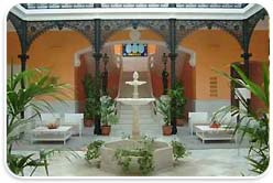| Parador of Zafra. Paradores are hotels in historical-cultural buildings, which are under the conrol of the Spanish state. The parador of Zafra was set up in 1437 and was a former residence of the Dukes of Feria |