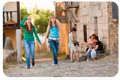At the beginning of the 1980s people came back to the village. Artists discovered the ruined town and used the free habitations for their needs. Some houses were converted into workshops and others restored into dwellings. In 1995, the artist settlement was replaced by a youth project which is still running today. A team of educators receive pupils every week from all over Spain or from other European countries. Even British pupils have already been to Granadilla. Tutored by their teachers, the pupils feed themselves and learn how to organise everyday life for themselves and their classmates. In the village they perform artisan works, repair flakes and restore decayed house walls. A power engine run by solar panels provides the new residents with electricity. The students have to pump running water from the lake. Every morning for 30 minutes “Radio Granadilla” is to be heard in the old small street of the village. The village-owned station informs the students of relevant news and the latest songs by Beyoncé or Metallica. In the evening after ending their daily work, pupils and teachers sit together at the former Plaza Mayor and admire the sunset. Near the sundial at the former city hall, there is this Latin quotation “Sub eodem sole omnes”, which means the same sun shines over all. And one is tempted to add: over all that were and are here.