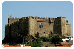 The castle Castillo de Segura de Leon. As an assignment of the Santiago order since the 13th century, the castle was built at the beginning of the 16th century.