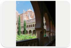 Even if you have already read in guide books about the size of the Monastery of Guadalupe, you will still be impressed by its actual appearance. To reach the monastery, you drive from Trujillo a long while through less frequented A-roads and via small villages like Logrosan and Cañamero. Before reaching the destination, you have to drive over several kilometres on winding and narrow roads which lead through the dense forest of the Sierra de Guadalupe. You finally reach the small town Guadalupe that is clung to an abrupt hill. As the road progresses uphill, you will see at first only the top of the tower and the roof of the monastery. Just before the majestic building you will see the church and the whole complex shining in full splendour. Only then the question will emerge: how can such a gigantic construction have been set up in such a tiny little place'