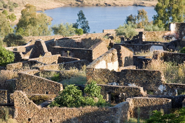 To reach Granadilla you drive from Plasencia northwards and then turn left onto the A-road Ex 204. Its residents were the losers of Francisco Franco’s ambitious projects. In the 1960s the Spanish dictator came up with the idea of enlarging some of the artificial channels in the country, in order to increase the capacity of hydroelectric power plants. For this project, the villages around the lakes had to be flooded. The residents were obliged to look for other places to stay. Granadilla was among them. The village was within a few weeks completely abandoned. However, nobody could have imagined what occurred later. The government in Madrid changed its mind and Granadilla escaped its fate. Nevertheless, the original inhabitants did not come back; even the mayor did not re-enter service. And time went by. The absence of the people became remarkable: wooden housetops have disappeared; weeds have grown in the small streets and trees in the ruins of stoned houses. In former bedrooms wild flowers are blooming.